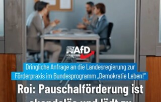 In Sachsen-Anhalt werden derzeit 23 „Partnerschaften für Demokratie“ über das Bundesprogramm „Demokratie leben!“ gefördert. Dabei geht es um Fördermittel in Höhe von bis zu 140.000 Euro pro Partnerschaft sowie zusätzliche Landesmittel. Eine Dringliche Anfrage des AfD-Abgeordneten Daniel Roi hinterfragte die Einhaltung formaler Fördervoraussetzungen. In vielen Kommunen wurde seit Jahren kein Beschluss zur Vergabe an [...]